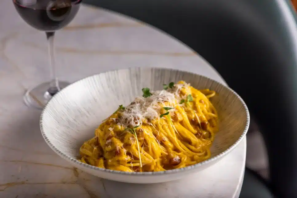 O La Serena, no Shopping JK Iguatemi, traz uma releitura autêntica do prato com ingredientes clássicos, como guanciale e parmesão, seguindo uma receita do país da bota. Já o Ristorantino, no Jardim Paulista, oferece o tradicional Spaghetti Carbonara com gema de ovo caipira e queijo de ovelha.