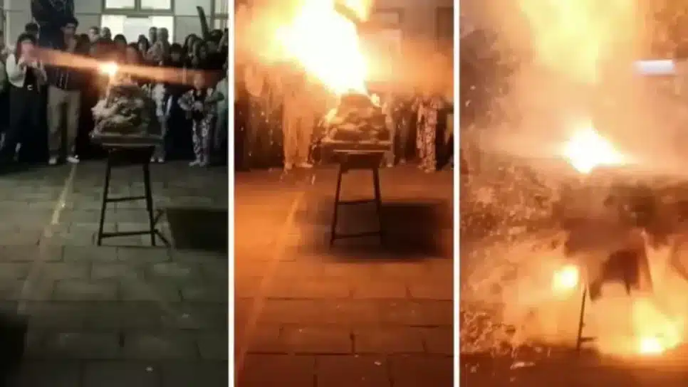 Antes da explosão, uma aluna explicou o experimento, detalhando a mistura de enxofre moído, carvão e um sal especial em tubos de metal. Ela mencionou que essa combinação formaria pólvora, responsável pela explosão.