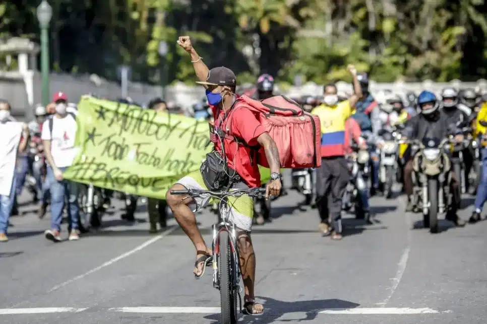 A categoria também critica a falta de transparência nos pagamentos, apontando para corridas de até seis quilômetros pagas com valores mínimos de R$ 7 para bicicletas e R$ 7,50 para motos, sem considerar a distância, o horário ou as condições da entrega.