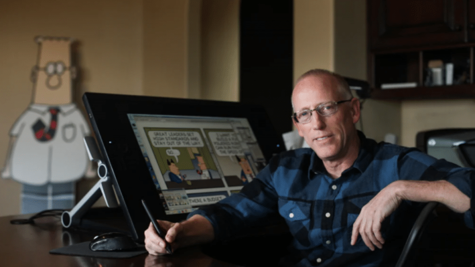 A série retratava, com humor ácido, os absurdos da vida corporativa, transformando personagens como Dilbert e Dogbert em símbolos da alienação e da burocracia empresarial. Durante os anos 1990, Adams consolidou sua fama. Em 1995, deixou o emprego para se dedicar exclusivamente às tirinhas e, em 1996, publicou “The Dilbert Principle”, livro que se tornou best-seller ao analisar a lógica disfuncional das corporações.